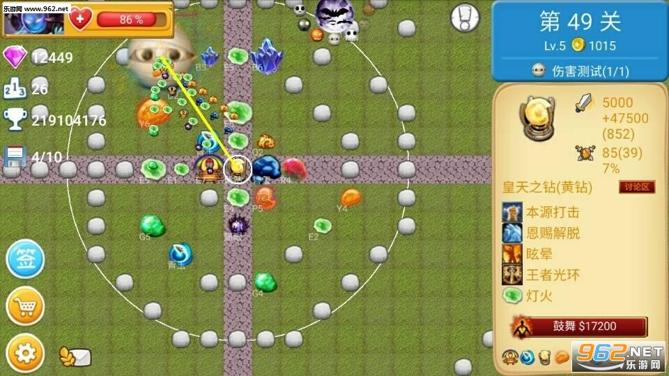 3、更多的内容:增加了大量原创宝石及防御塔,8种英雄技能随意选择,多达50种强力技能祝你一臂之力;