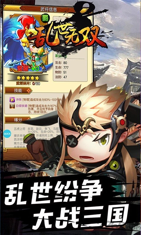 乱世无双bt果盘版是一款三国题材的卡牌策略手游,游戏内融合了多种玩法元素于一体,游戏里玩家将体验到原汁原味的三国卡牌对决,各种三国人物为您还原,带您重回三国乱世,感受尔虞我诈乱世情仇的快感,喜欢的朋友来2265安卓网下载吧!