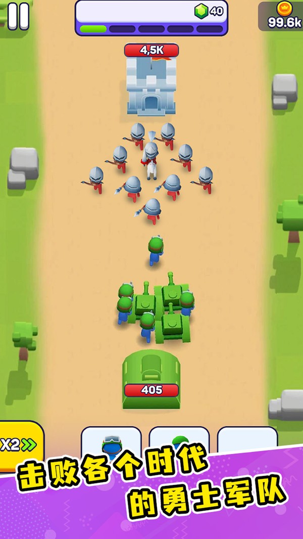你将负责和控制一支勇士军队,击败来自各个时代的所有其他勇士军队,成为爆破之王!每个职业都有自己的优势和力量,使用你明智的策略来建立军队,击败各个敌人。