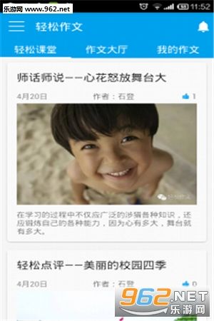 轻松作文是一款写作文教育平台,这里可以查看所有的轻松课堂内容。为孩子们解决不会写作文的烦恼,教导他们更好的学习写作,不仅可以帮助自己提高作文水平也可以在这里欣赏他人的作文内容,从而尽快的提高自己的写作水平哦。