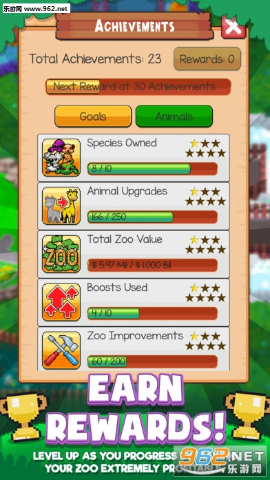 《放置动物园大亨汉化版》(Idle Zoo Tycoon)这是一款复古像素风格的放置经营类手游。游戏画风简单有趣,玩家可以饲养不同的动物,建造小吃摊、周边店等娱乐设施,装饰并发展你的动物园,吸引更多的游客,而且还支持离线功能。感兴趣的玩家可以下载体验!
