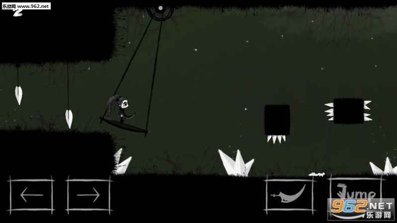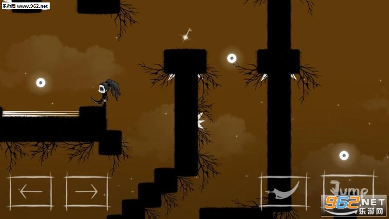 采用独特的水墨式暗黑风格打造的横版动作冒险游戏。灵活的使用你的一段跳跃和二段跳跃技能以及地图中的技巧机关来挑战各种难以逾越的地形。使用你手中的弯刀来清除一些挡住你去路的小怪,收集地图关卡中的药匙,找到通往下一个关卡的路径。