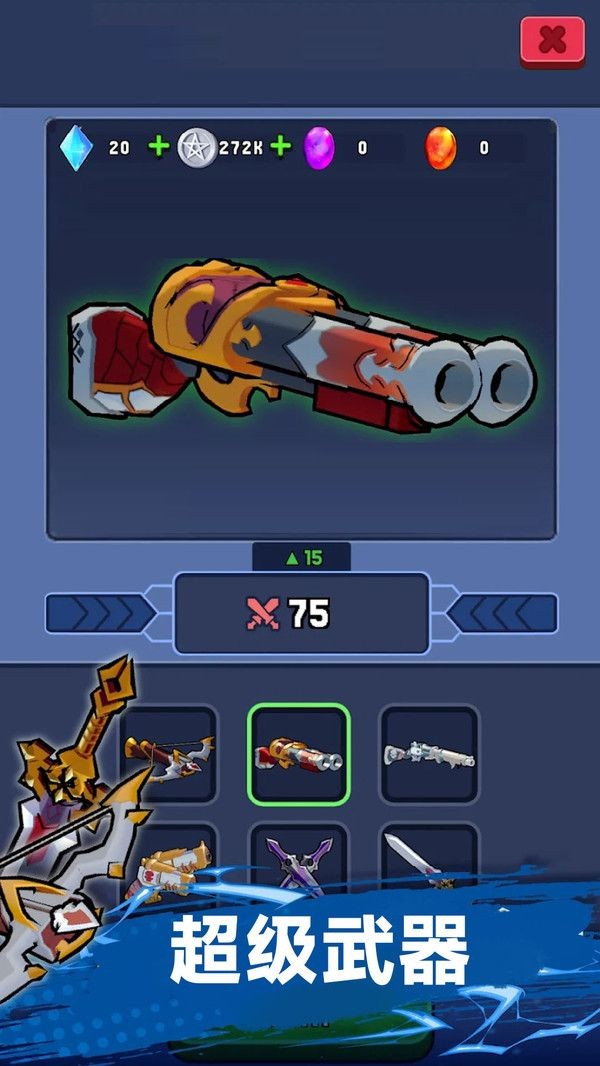3、利用关卡奖励升级装备,解锁更强大的技能,应对更强大的敌人。
