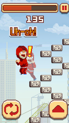 在向上跳的过程中,玩家不能一味得追求快,要看好上层阶梯的排布方式否侧很容易就跳空,同时还要避开天空坠落物,还有一点要注意就是每个角色人物的能力值都是不同的,要记得活用他们的技能能帮你取得更好的成绩。