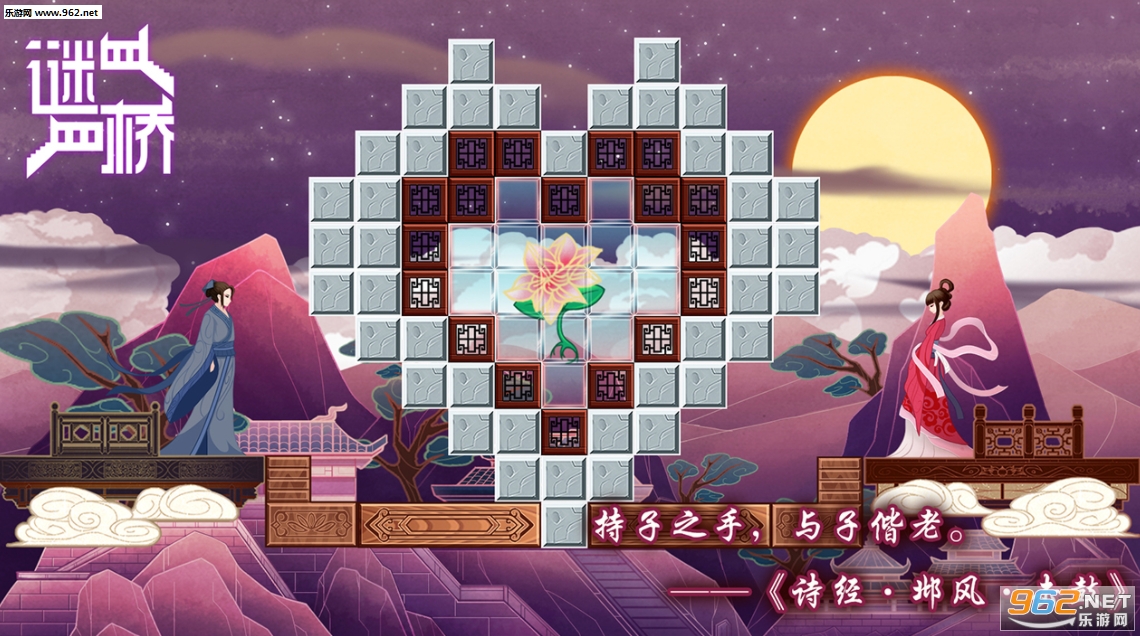 《谜桥》是众人在线开发,飞鹰互娱发行的一款取材于牛郎织女爱情故事的独立游戏,在游戏中,玩家需要扮演喜鹊帮助牛郎织女搭建鹊桥,助其相会。这同时也是一个关于爱情的游戏,唯美的画面、精致的风景,搭配古典的中国民族音乐,讲述着各种各样的爱情故事。