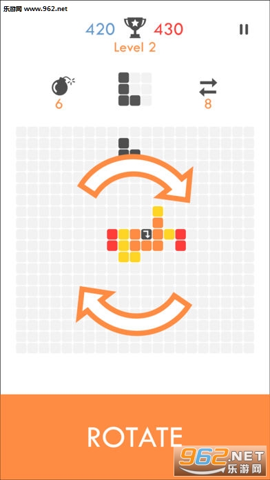 玩家需要以箭头方块为中心,接住所有掉落的方块,合理安排位置,并消除得分,非常考验玩家的策略和大局观!