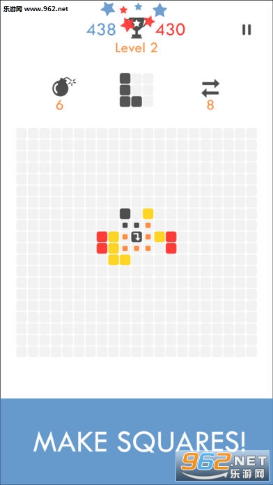 《Make Squares安卓版》这是一款非常好玩的益智消除类手游。游戏以俄罗斯方块为基础,玩家需要移动或者旋转中心的箭头,接住不断下落的方块,尽量保持在中心方块周围,并消除得分。游戏上手容易,但是比较考验玩家的思维和反应。感兴趣的玩家可以下载挑战!