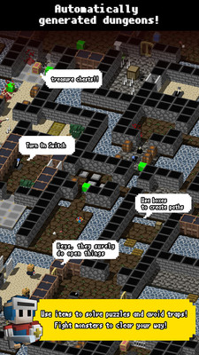 一款像素风的角色扮演类游戏。游戏中玩家将要对付一个自动生成陷阱的地下城,并在地下城中进行探索,同怪物作战,有时需要道具解开机关,玩家可以十分简单的操控角色进行移动、攻击和施放魔法,游戏中的地图是自动随机生成的,所以每一次玩都会很有新鲜感。玩家进入游戏后,将身处困难重重的地牢,与敌人展开激烈的战斗,那炫酷华丽的特效,让人眼花缭乱哦!
