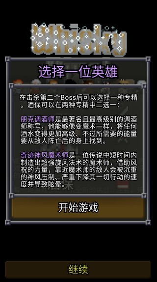1、进入威士忌的像素地牢主界面,直接点击“继续”。