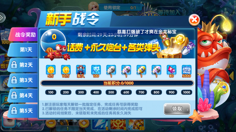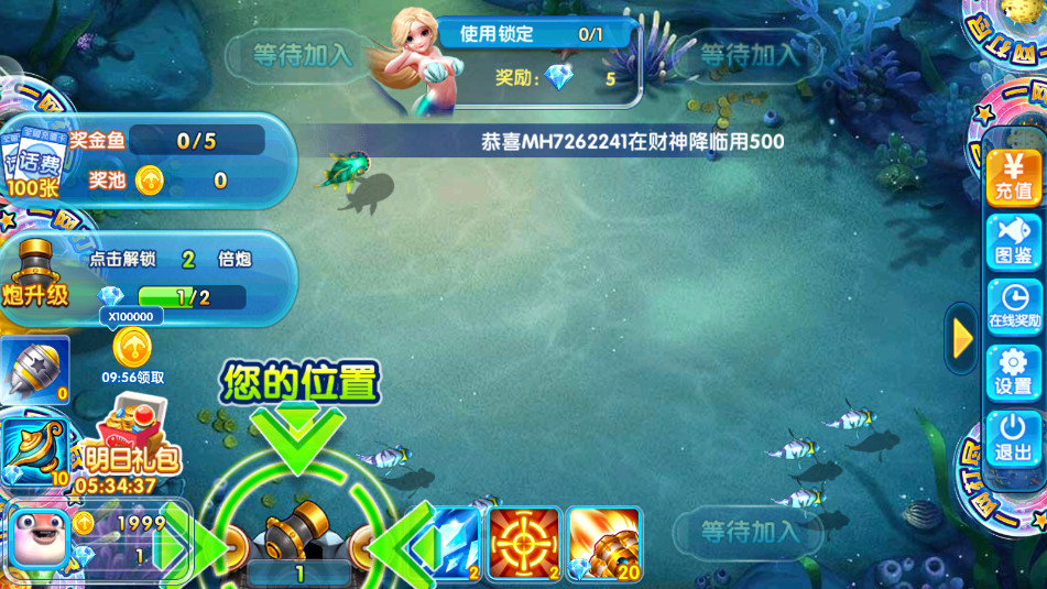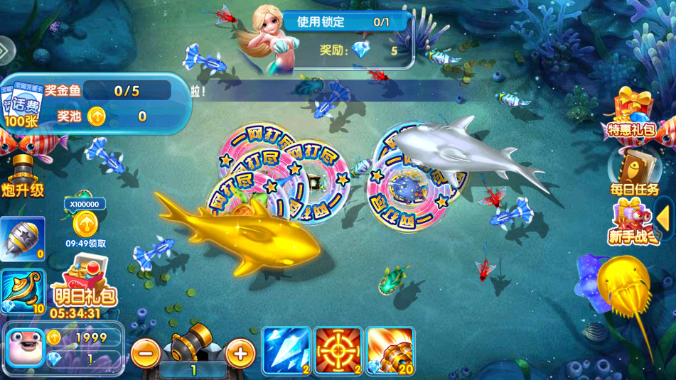 3、最后在刚开局捕鱼时,不要固执于击打大鱼,虽然捕到大鱼收获不少,但凭自身当前的实力,难度是比较大的,打的鱼多,刷的金币就越多。