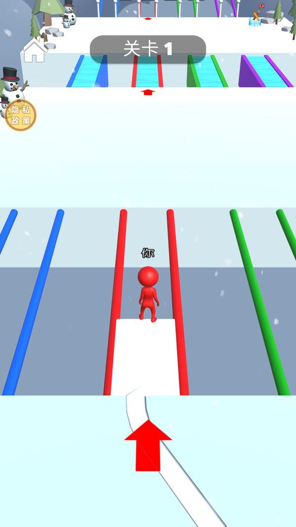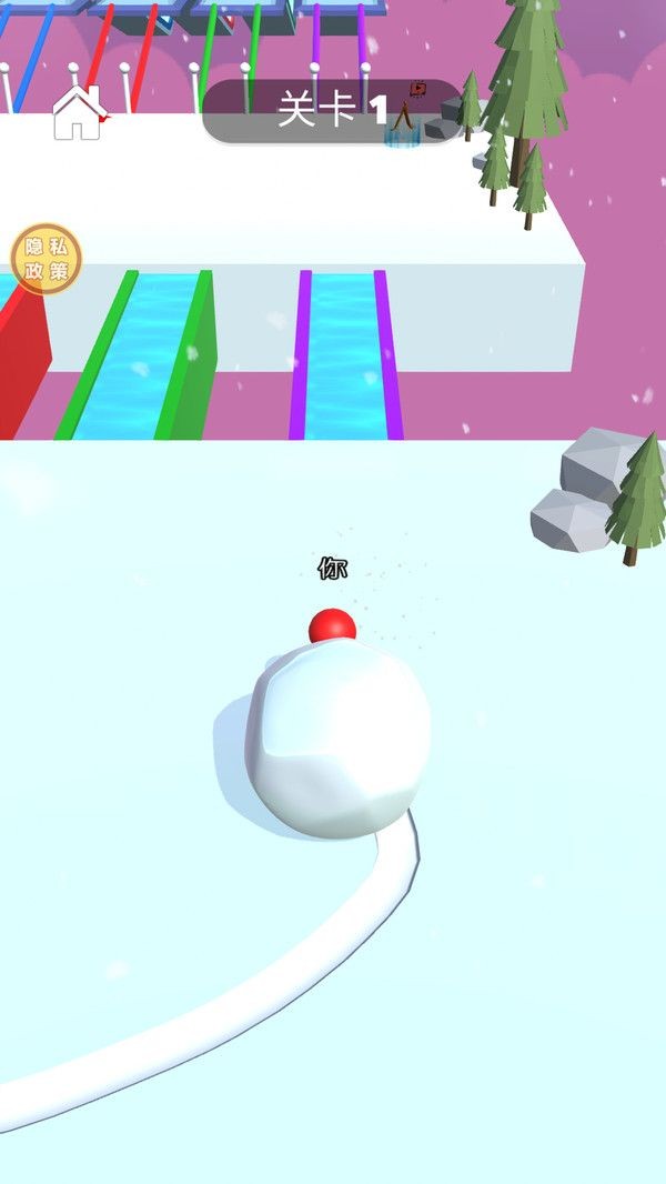 1、操控作为雪球大师的角色,在冰雪场景中活动,迅速的抵达目标地点。