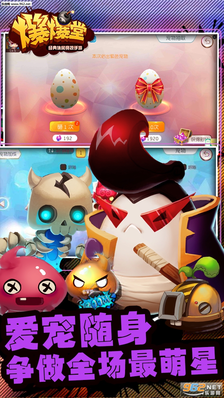 《爆爆堂》目前共有25只宠物可供玩家选择,携带不同的宠物参战,可以在游戏中获得的不同的加成(积分、荣誉、经验、金币、勇气币等)。