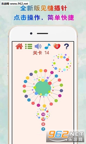 《见缝插针》是一款非常好玩的休闲益智游戏。游戏玩法非常有特色,是一款需要技巧和手速的游戏,玩家需要将针插进旋转的小球中,不能碰到其他小球。游戏中有大量关卡可供玩家挑战,游戏画面非常清新,感兴趣的玩家快来下载体验吧。