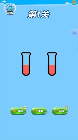 2、将相同颜色的果汁倒入到同一个瓶子中达成颜色一样,完成游戏的目标。