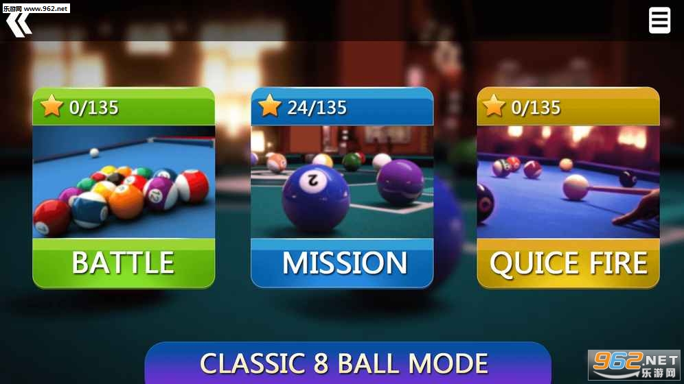 快速游戏模式:快速开始一场9球模式,你需要在两分钟的时间内将尽可能多的球击入洞中,每击入一颗球可以获得额外的十秒钟时间,看看最后你能击入几颗球;