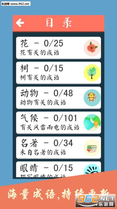 2、感觉这个游戏很好玩,已经有很多年不碰这些成语了,有很多都生疏了,在想这些成语的时候,也会想起当时背这些成语的场景,很值得怀念;