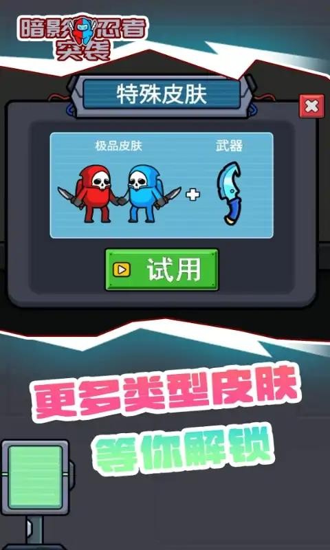 暗影忍者突袭在设计上和火柴人有些类似,游戏以忍者冒险为主题,关卡内容丰富多样,玩家只需要通过屏幕操作就可以控制火柴人忍者前行,通过各种不同的技能来帮助你轻松击败敌人,线上操作简单轻松,全新水墨式绘画风格设计在给予玩家极为丰富的游戏视觉体验的同时,也可以为你展现出忍者技能的炫酷和趣味,每次挑战关卡都有三次机会复活的机会,要珍惜使用,不同的招式风格会随着频率会发生变化,玩家也可以通过佩戴不同的技能来应对后期变化多端的关卡挑战,去完成自己的任务。