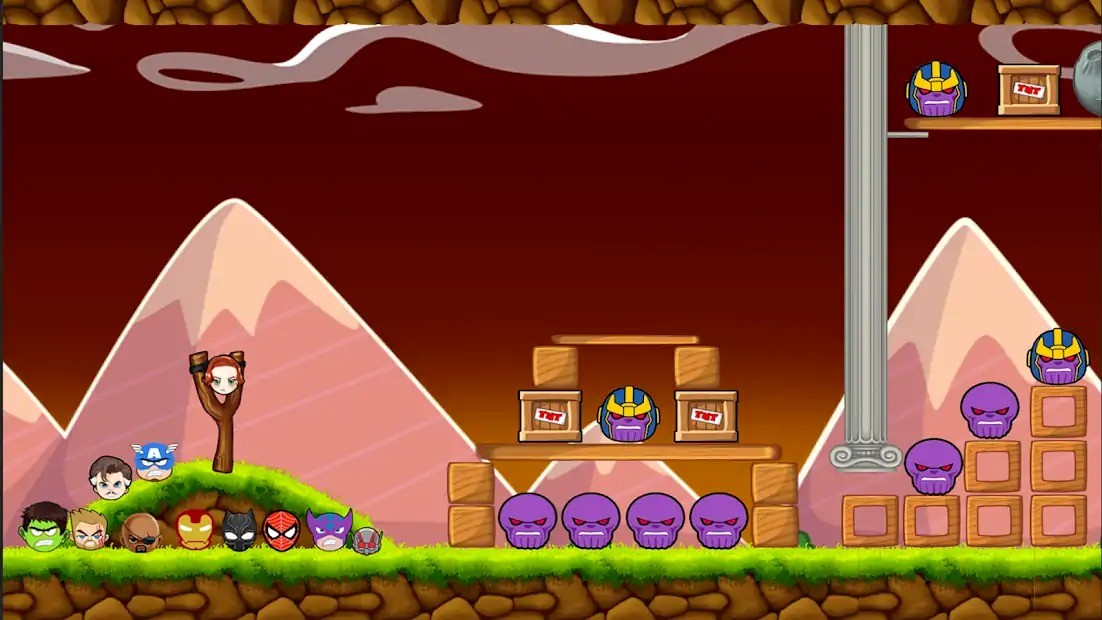 愤怒的超级英雄在某些玩法设定上其实和愤怒的小鸟十分类似,全同样的弹弓,同样的物理设定,但是我们有全新的弹弓玩法挑战,玩家的任务就是运用你精准的眼力和计算能力,点击屏幕拉动弹弓,调整好角度进行发射,从而帮助正义的复仇者联盟击败邪恶的灭霸,游戏中的各个超级英雄的形象设计Q萌可爱,不仅高度还原了超级英雄的特色设定,而且看起来也非常舒适,游戏中的关卡内容设计丰富多样,每一关的难度和闯关方式都是不同的,当你砸到全部灭霸就能通关,后期还有超多惊喜内容等你来体验哟。