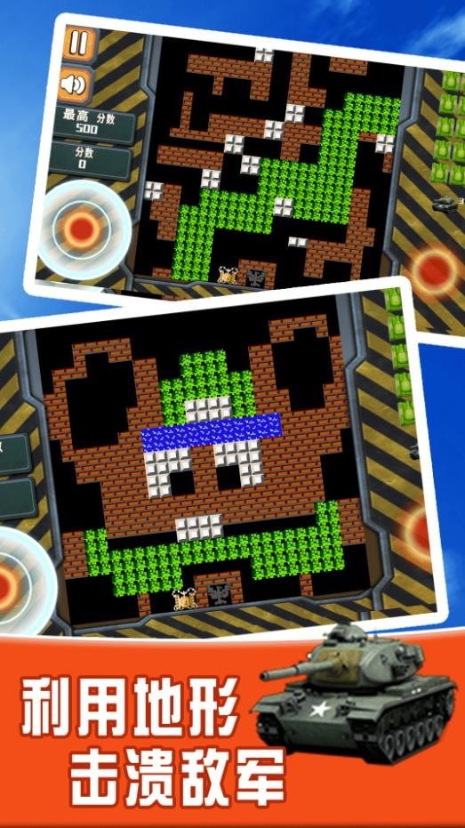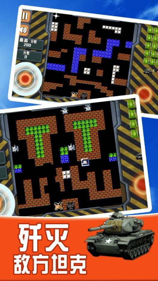 坦克小霸王是一款好玩的射击对决游戏,在这里经典的坦克冒险能够体验到多种游戏元素,游戏中多种层次保护你的基地,能够在这里灵活的挑战,上手多种游戏乐趣,全新的操作冒险,喜欢坦克的玩家快来这里下载吧!