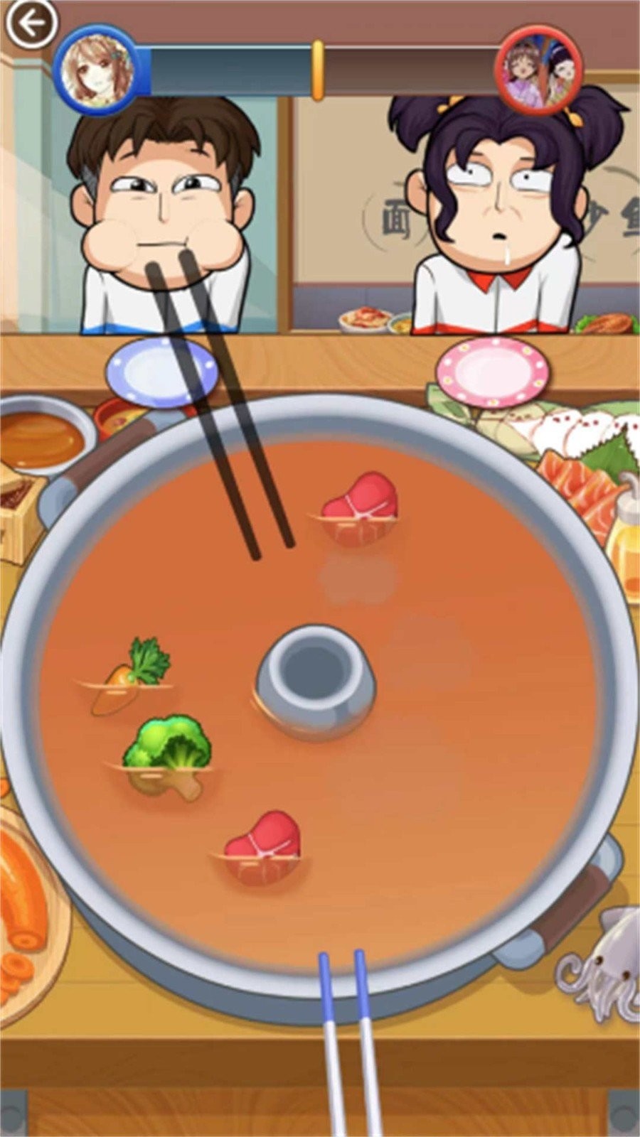 游戏是一款专门为双人设计的同屏竞技游戏,游戏模式包括双人大比拼、双人大挑战、双人运动会等,玩法丰富,和你的小伙伴一起比赛吃火锅,看谁吃的东西最多,或者一起比赛扯书本,看谁的力气大?聚会时在欢声笑语中度过,加上游戏可爱卡通的画风,能让时间非常流逝,和你的小伙伴试试吧!