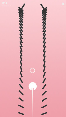 游戏玩法比较考验玩家的反应能力,玩家需要操控着小球在不断上升的过程中躲避下落的障碍物。