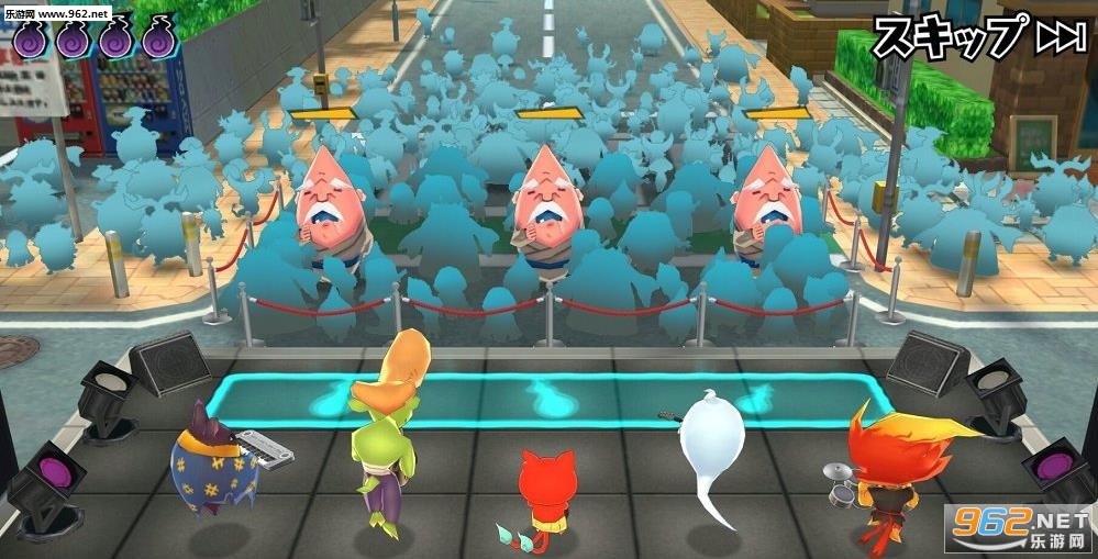 2、当妖怪手表中的妖怪们降临到手机游戏中,它们不予恶灵对战,只是整天开着演唱会;