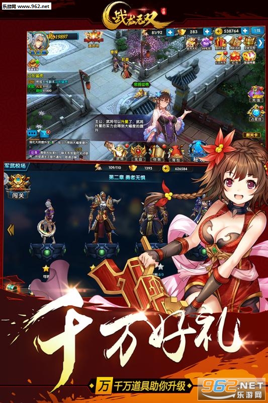 群雄并起,争夺天下,传统SLG策略玩法,与其他军团互动激战,一统天下!主公可通过在领地兵营内消耗粮食、物资来募兵,升级兵种强化军队。攻城略地,占领城池后,可获得丰富的每日城主奖励。