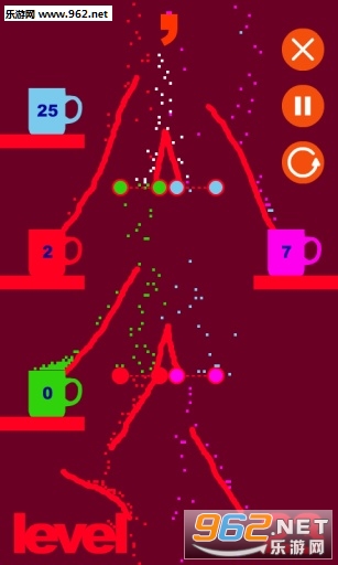游戏玩法与所有物理类游戏一样,其中既有创造又能够遵循现实的物理定律。当一颗颗砂糖从高处往下落时,玩家在屏幕上画出什么形状,这些小颗粒便会沿什么轨道下滑。而你要做的便是用砂糖填满一个个标有数字的杯子,每个杯子显示的数字是多少代表了需要的砂糖个数。