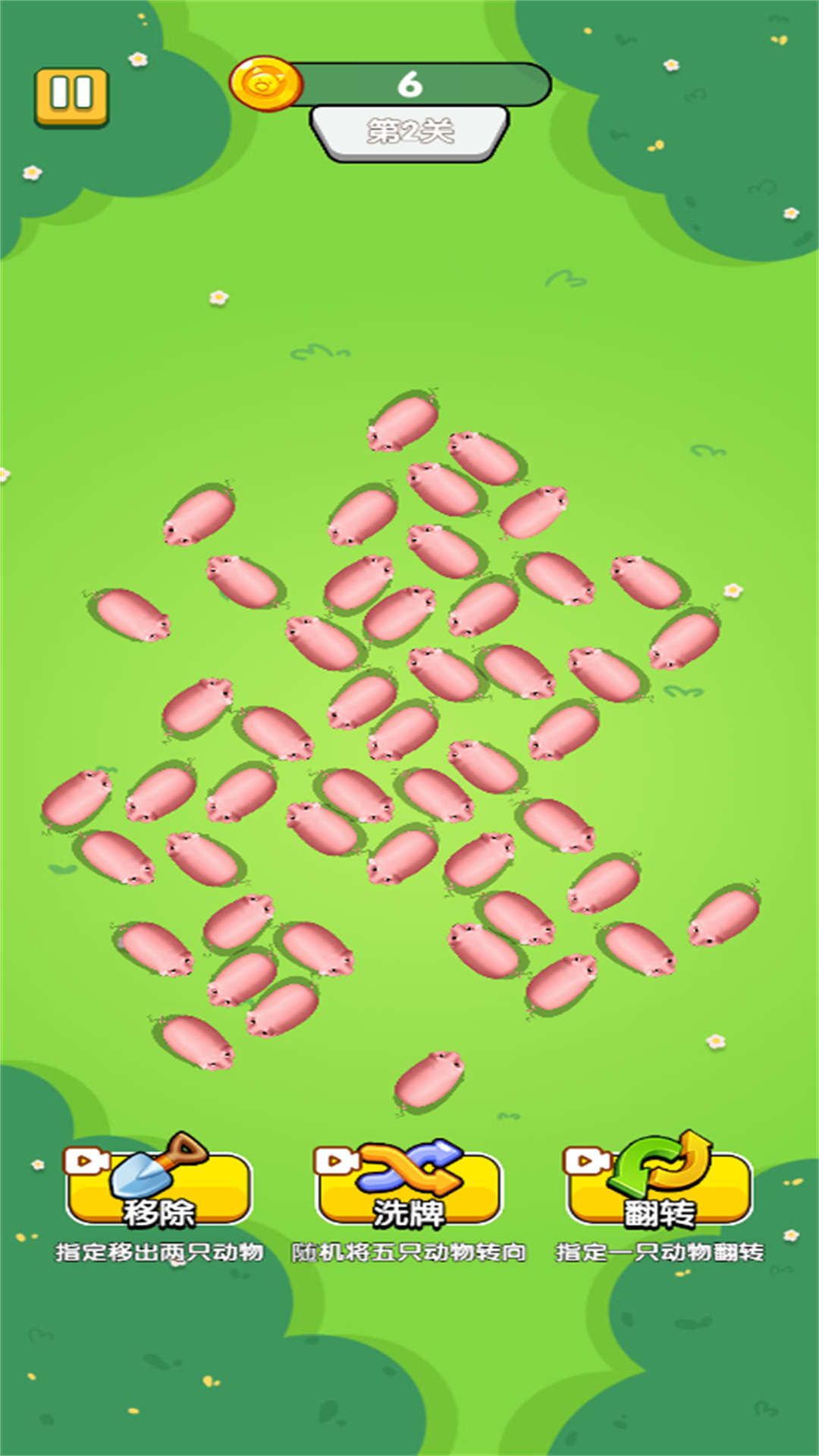 2、运用各种操作,如移除、翻转等,消除小猪前进道路上的阻碍,保证小猪顺利到达猪圈。