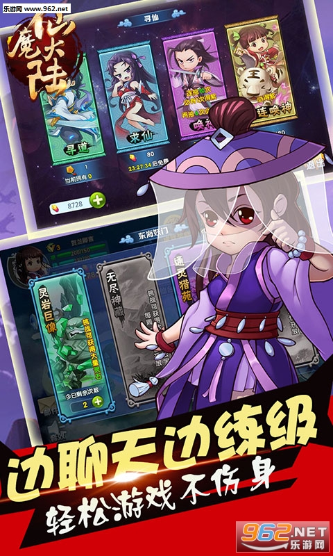 游戏中玩家可以选择自己喜欢的剧情角色,自由搭配自己最喜欢的队伍,体验修仙夺宝的快感。每一个角色都有独特的技能天赋和人物缘分,各种神奇而强悍的法宝、法术,都会由炫丽的特效直观展示。