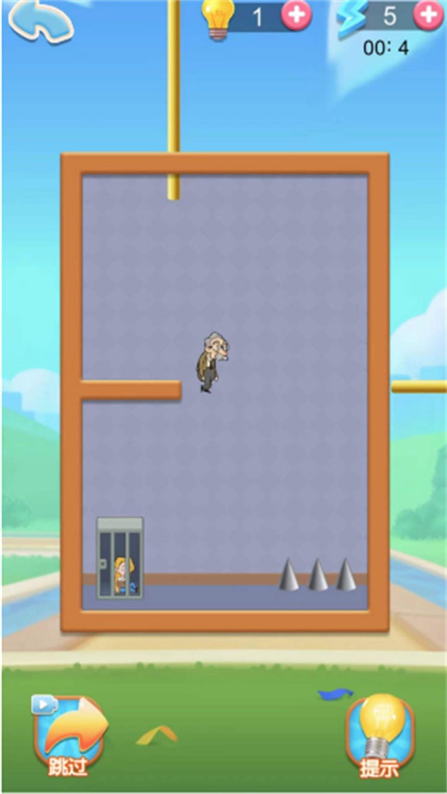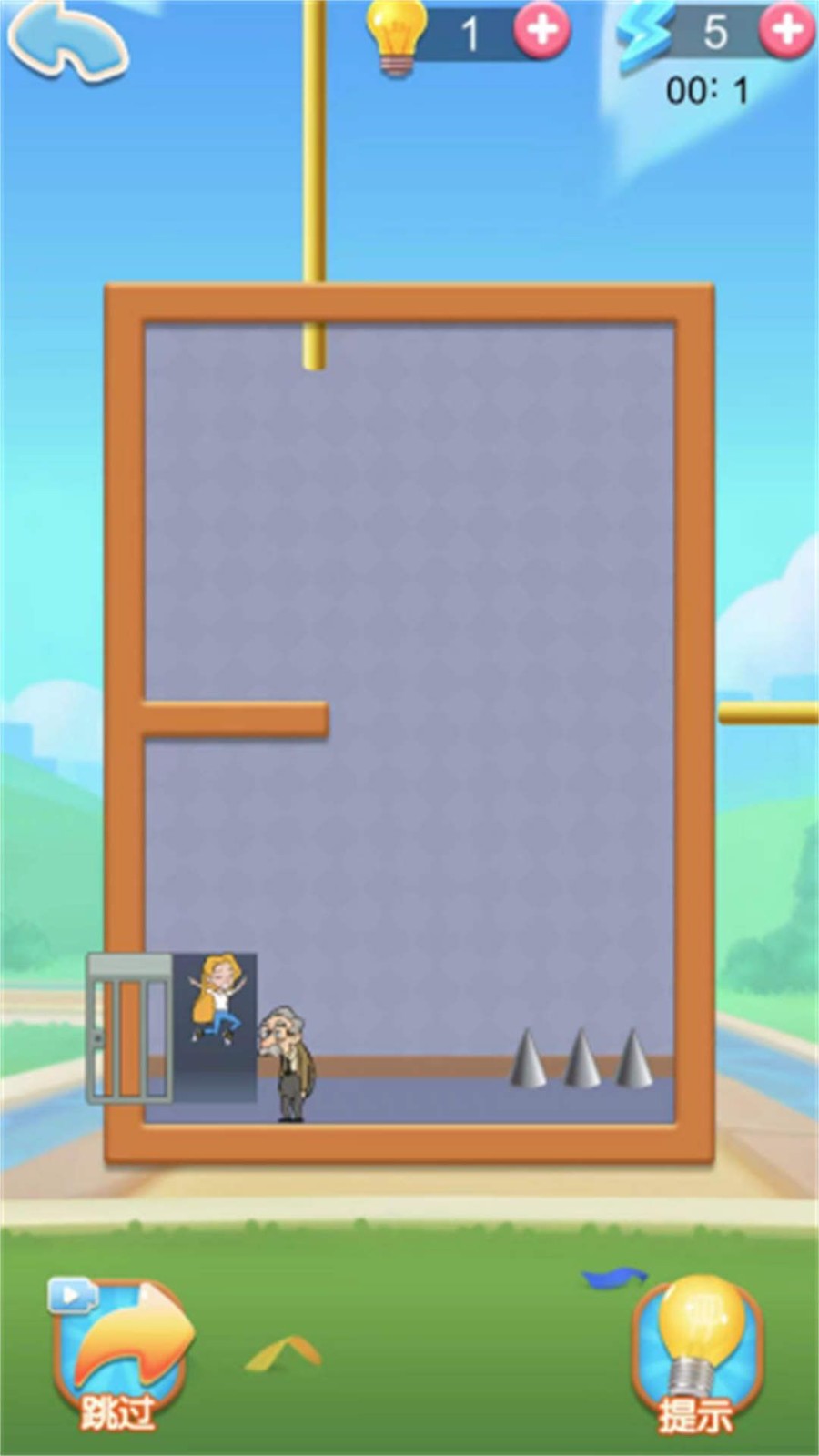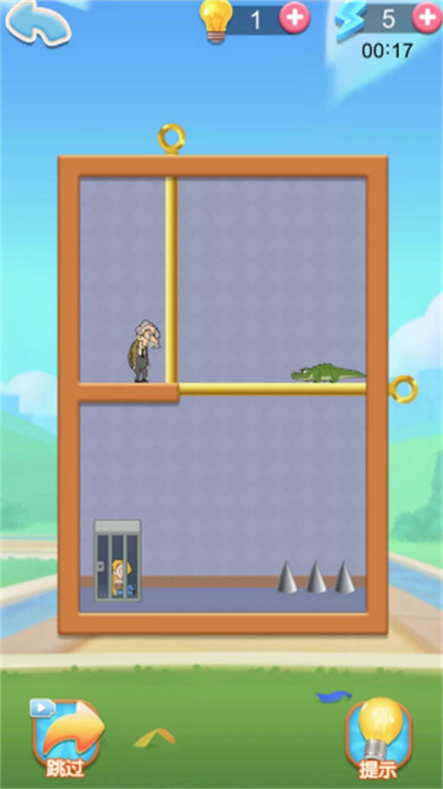2、通过拔掉棍子破坏障碍物来解救被困老爷爷,方式新颖独特。