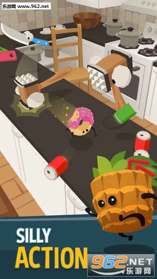 点击可以控制小菠萝朝面向前进,划动进行冲刺,不去管它则会在原地旋转。躲避火炉、菜刀、锤子,还要小心不要掉下去,最终目的是拯救本是同根生的食物朋友。