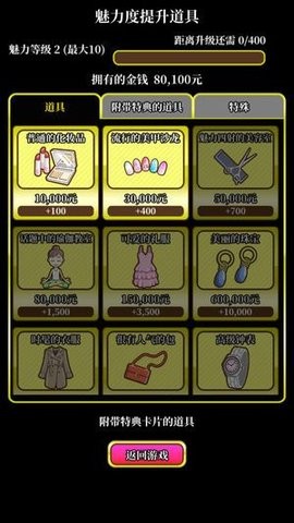 2、用赚到的钱购买提升魅力的道具,可以提升雫的魅力;
