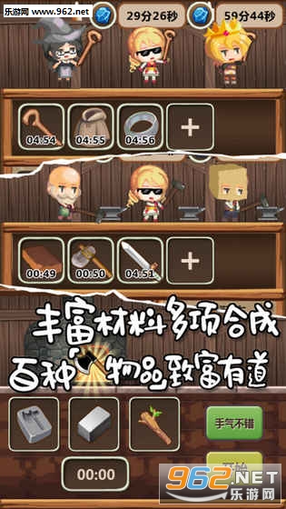 游戏为放置挂机玩法,当你关闭游戏忙于现实生活时,游戏中的这片大陆时间将和你所在的世界同步流逝,出现日夜流转,天色变幻。所以当你交待完冒险者的任务之后,可以在你闲下来的时候再来观察结果,归来的冒险者们,丰富村民制造的道具物品、从树林和矿洞中采集的材料,都会静静地在村庄中等你回来领取处理,赶紧用你机智的头脑来拯救这片大陆带领大家击败魔王吧!