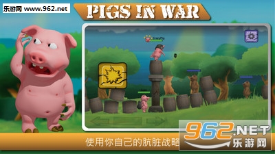 《战争中的猪安卓版》是一款趣味性射击对战游戏,玩家在游戏中作为猪主角,主要目的是利用炮弹去击败敌人,掌握好射击角度和力度十分重要,感兴趣的玩家可以下载试试!