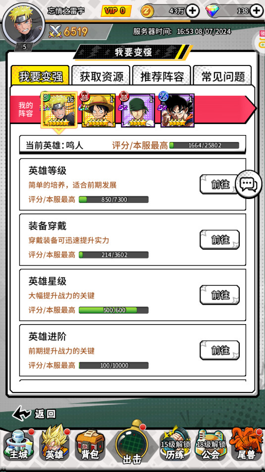 然后出击页面点击我要变强