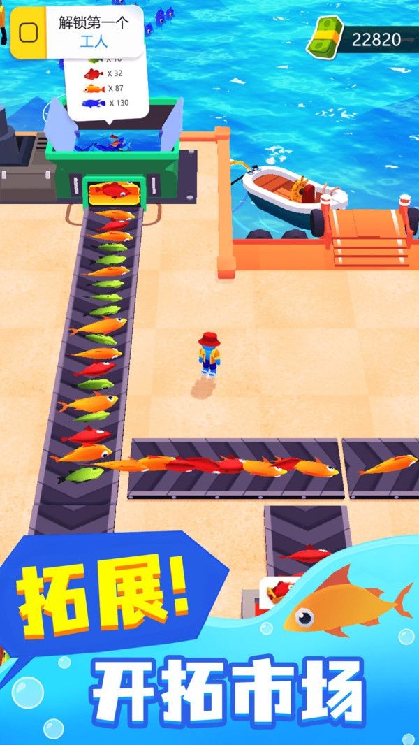 2、包含捕鱼、加工鱼产品、解锁工人、开拓市场等多个经营环节。