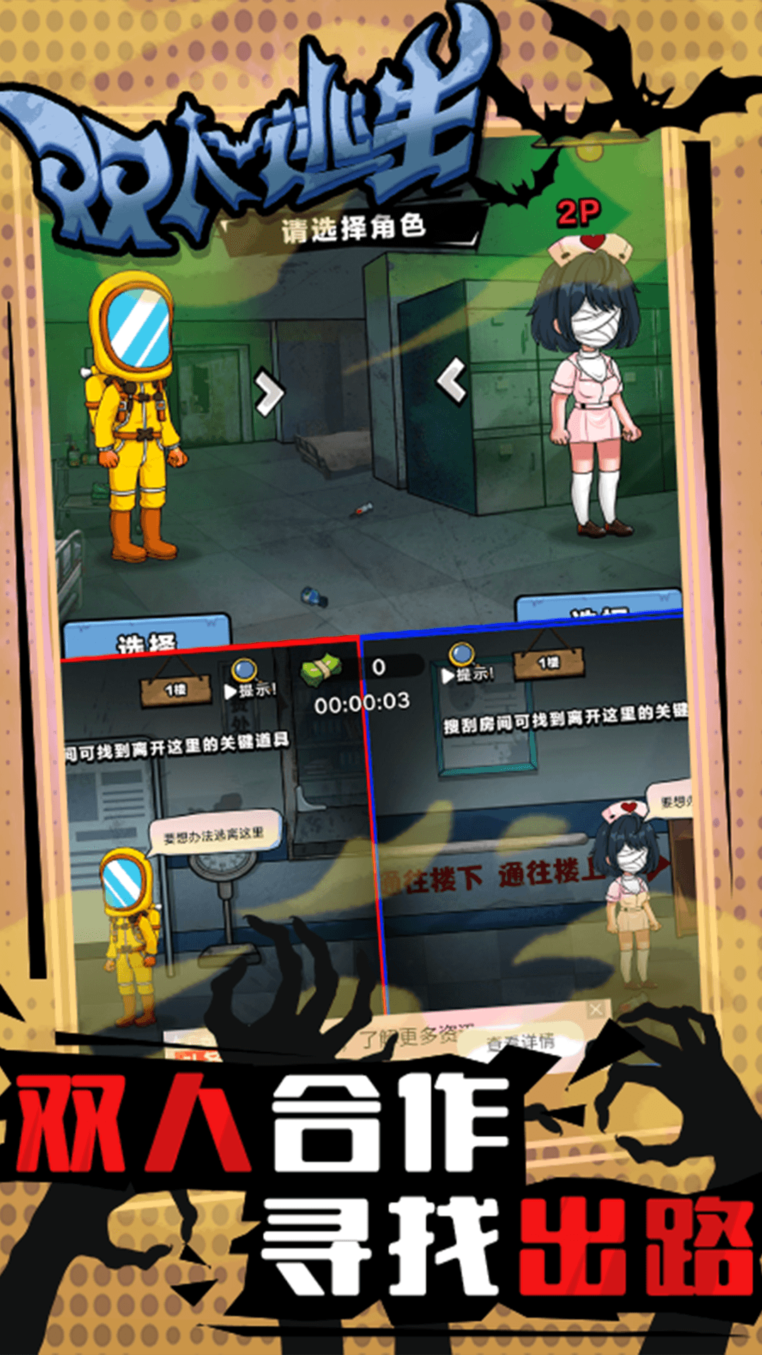 1、支持双人游玩,需要相互协作,共同面对恐怖医院中的各种挑战