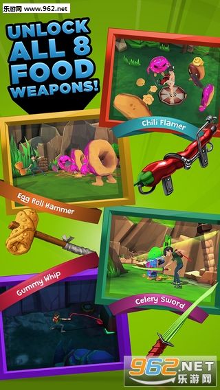 美食大作战游戏讲述的是一个名叫安东尼的男孩在各个不同的世界探险,你可以利用解锁的美食作为武器战斗,以此击败你的对手。指导安东尼通过多种独特的世界,在那里你可以解锁武器和装备他最喜欢的食物来帮你战斗伊恩的成群结队的邪恶的甜甜圈奴才。你需要每个武器阿森纳如果你希望生存粉色磨砂最终老板!