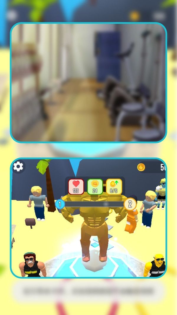 1、通过点击屏幕,让游戏角色开始进行健身锻炼,如举重、跑步、俯卧撑等。