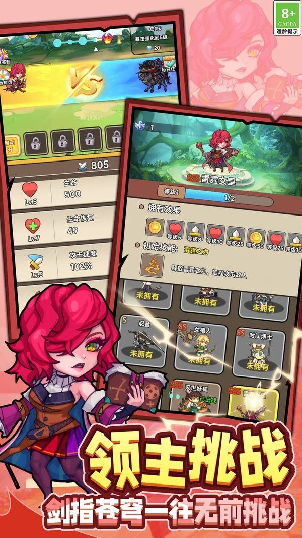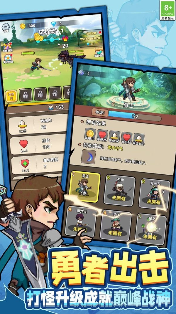 2、升级勇士的属性,培养宠物,多维度提升战斗能力,增强了极大的策略性。