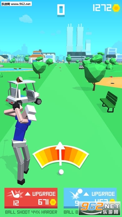2.去收集路边上散落的金币来解锁更多球杆和高尔夫球,不同的球杆能够为玩家提升不同的人物属性;