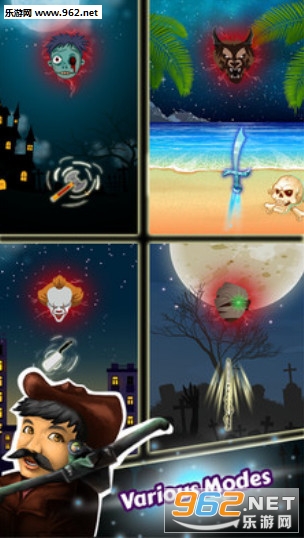 2、通过投掷的方式来击杀各种鬼怪来,你可以解锁各种不同的武器来帮助自己快速的终结鬼怪;