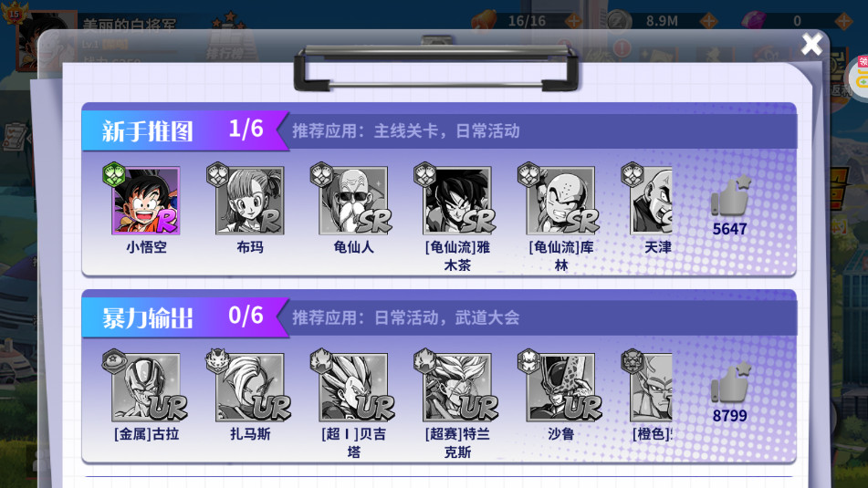 游戏福利非常丰富,小氪白嫖也能玩,第一天登录领到UR孙悟空,前期资源拉这一个,基本上可以快速通过前面的关卡。然后拿到通关送的破坏神比鲁斯。由于初期资源有限,如果资源平摊到几个英雄上反而容易导致关卡不能三星,前面主拉这两个英雄。基本就可以应付日常活动。拿到日常送648福利和大量通关钻石。钻石可以去商店买经验胶囊,后面会比较缺。然后就是用来买限时招募券了。游戏抽奖爆率非常高,一百抽基本能抽到两个左右。第一天基本通关+赠送基本就可以拉起一队UR英雄去通关了。然后有几点需要注意: