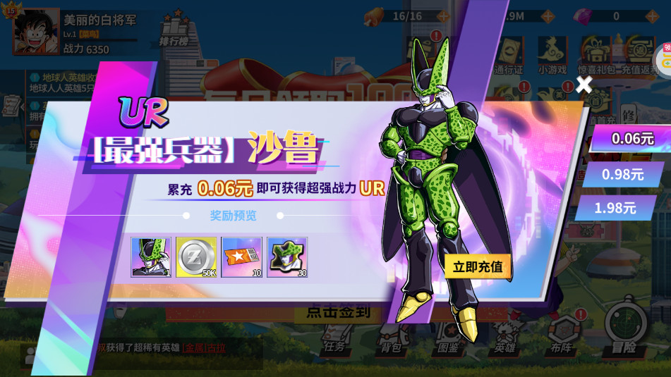 ★登录就送ur英雄孙悟空*1、孙悟空全套专属装备礼盒*1、黄金套全套宝箱*1、经验胶囊-max*888、突破材料自选大礼包*18、银币*888w,豪华大奖送不停。