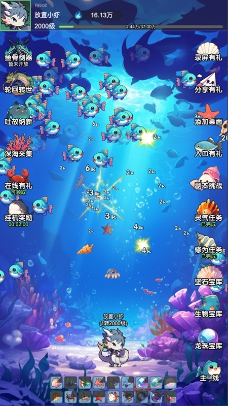1、做最强力的海底弄潮儿,与各种稀有的、凶猛的鱼类相遇,捕捉它们,吃掉变强;