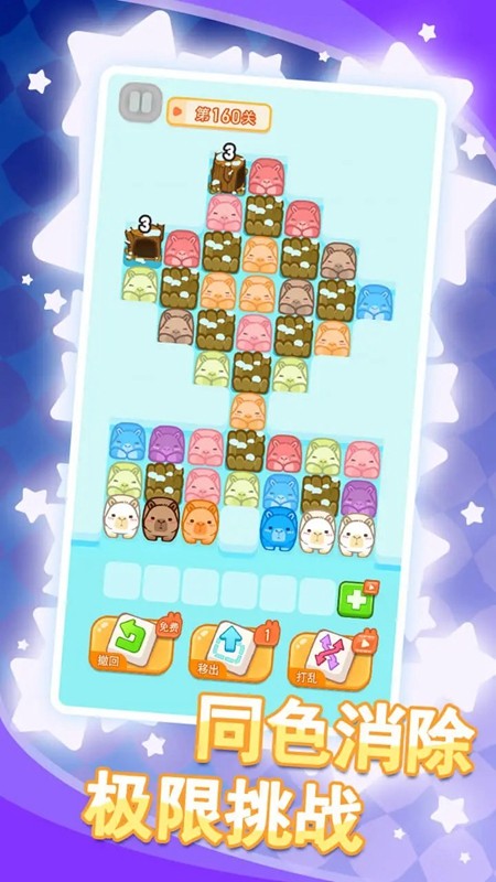 在游戏中,我们的任务就是把相同颜色的水豚皮皮放到一起,让它们消除。