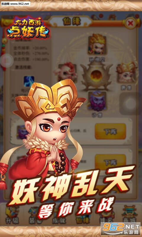 《点妖传大力西游h5微端》是一款画面卡通的以西游为题材的RPG手游,游戏上架了众多的Q版西游人物,玩家可以收集孙悟空、牛魔王、如来佛祖等神话人物来组成自己的队伍,有着丰富的西游故事可以体验,激斗西游,等你来战。