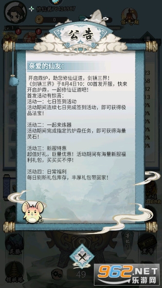《剑镇三界、》是一款以修仙为主题的弱PVP挂机游戏,核心玩法围绕开启神秘鼎炉获取装备、升级角色展开。玩家可通过开鼎炉提升实力,体验浩渺仙侠世界,参与历练与对战。游戏融合爬塔、偷菜等休闲玩法,装备系统丰富,挂机即可畅享开箱快感。更有高性价比礼包助力成长,兑换码福利免费领!踏上这段惊心动魄的修仙之旅,你能否从鼎炉中开出绝世神兵,成就三界至尊?