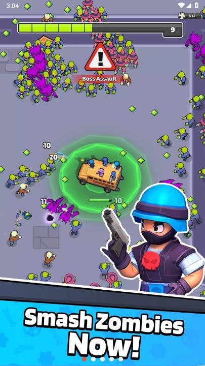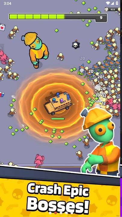 自动射击混乱:你的巴士不只是用来粉碎;用自动射击武器和技能召集你的小队,清除僵尸群。明智地管理您的小队,轻松清除成群的僵尸。